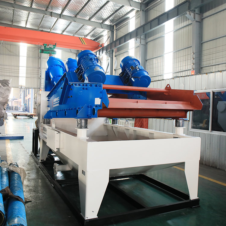 如果沒有旋流器,則為洗沙脫水篩機,就比較簡單,把水和砂分離,如果有旋流器,那就是細砂回收機,泵漿砂水混合物輸送至泥砂高壓分離器,離心分級濃縮的尾沙經沉砂嘴提供給脫水篩,經脫水篩脫水后,尾沙與水有效分離,少量尾沙、泥等經返料箱再回到清洗槽,清洗槽液面過高時,經出料口排出。