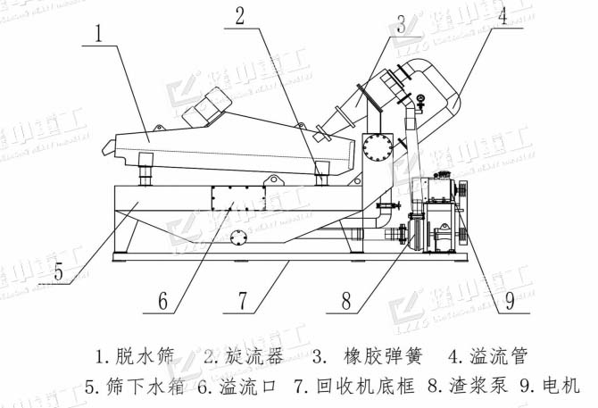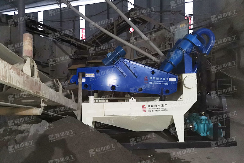 洗砂機溢流的洗沙廢水與細沙回收機的清洗槽相連,而后通過渣漿泵將清洗相中的砂水混合物輸送至泥高壓分離器中,通過高速離心力和額定的入料壓力,旋流器將礦漿中的細沙分離,濃縮后濃度提升至60-70%的細砂經沉砂嘴提供給脫水篩,在篩機振動的作用下,細砂與水有效分離。
